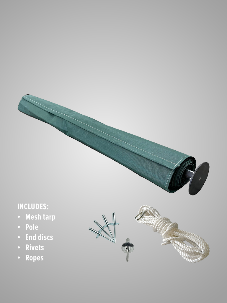 Full replacement tarp kit for HT2000 – includes mesh tarp, pole, end discs, rivets, and ropes.